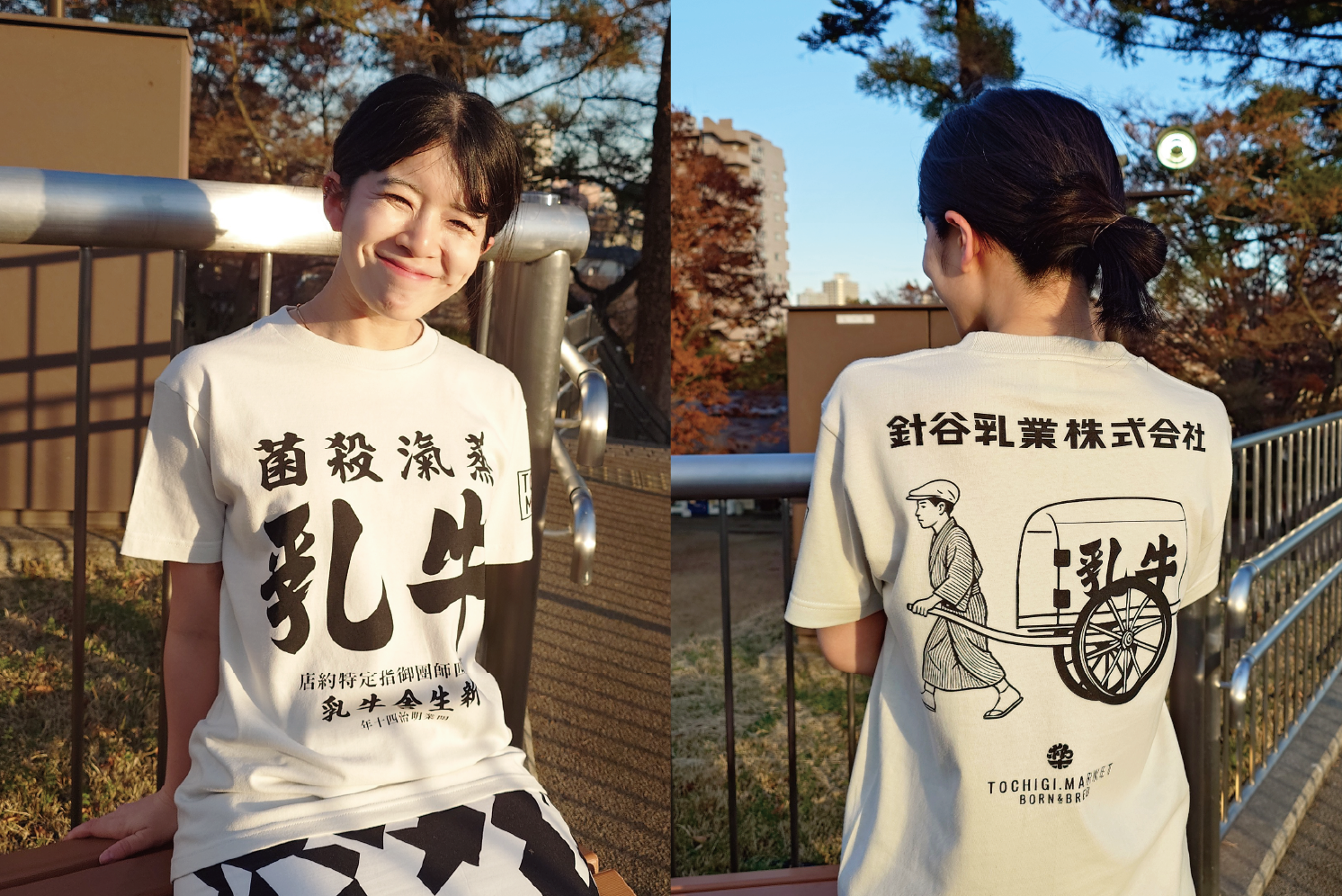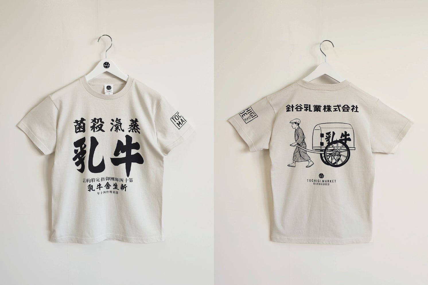 今回発売するコラボレーションTシャツは、針谷乳業が育んできた「かわいらしさ」と「レトロな企業文化」を、トチギマーケットの視点で再構築した全2種類のデザインです。