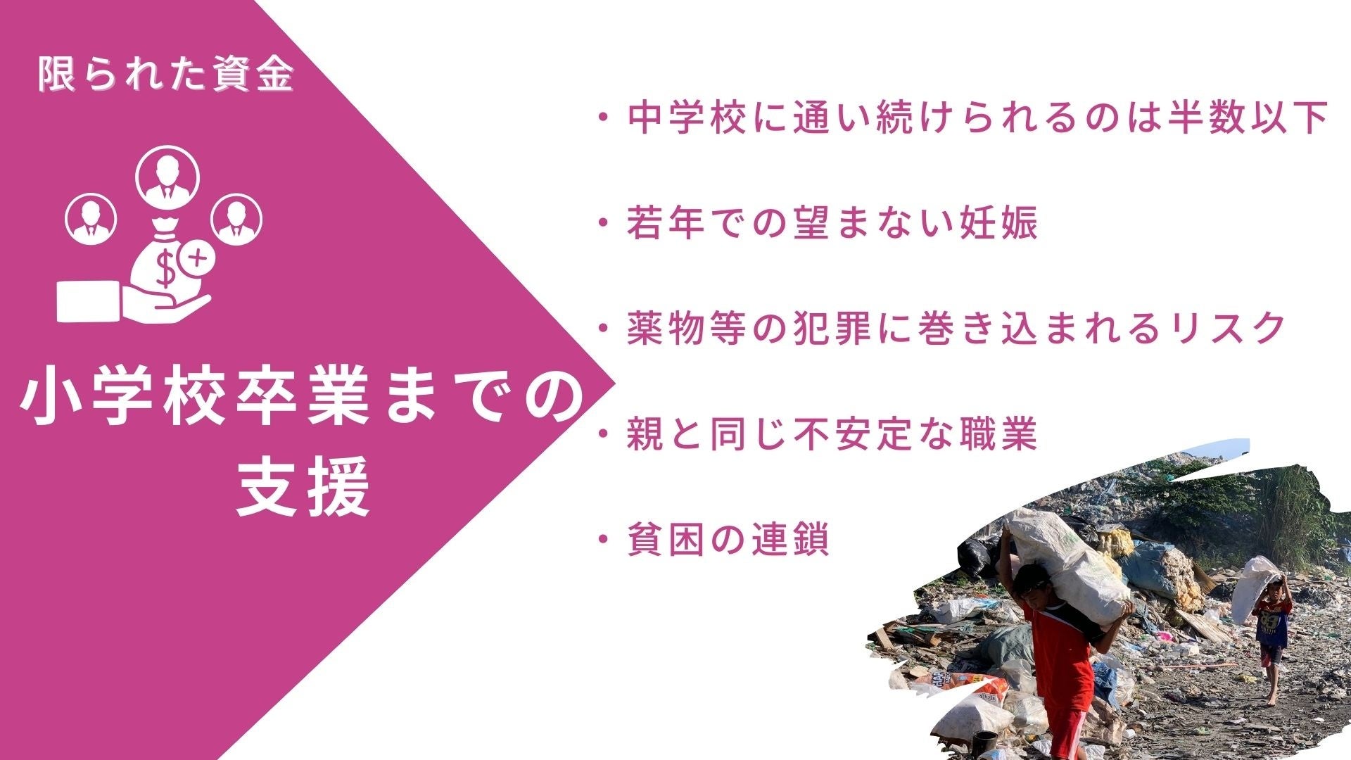 学校に通うことができない子どもたちは、犯罪に巻き込まれたり、若年妊娠のリスクが急増します。そうなれば、彼らの人生は今まで以上に過酷なものになっていきます。
