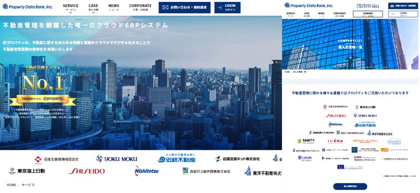 不動産管理クラウド「@property(@プロパティ)」を提供する、プロパティデータバンク株式会社(本社:東京都港区、代表取締役:武野貞久、以下「プロパティデータバンク」)は、弊社ホームページ上の導入企業様のロゴ表示方法のリニューアル及び、導入企業一覧ページを新規公開いたしました。 (導入企業一覧ページURL:https://propertydbk.com/case/companylist/)