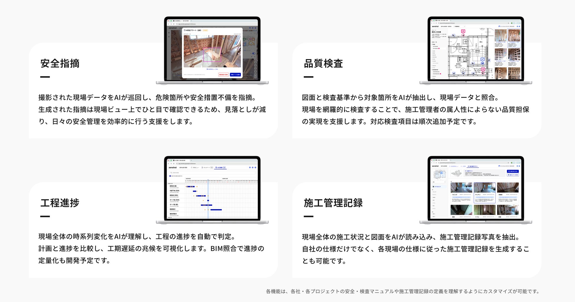 zenshot AIは、以下のような施工管理業務を支援し、自動化します。
