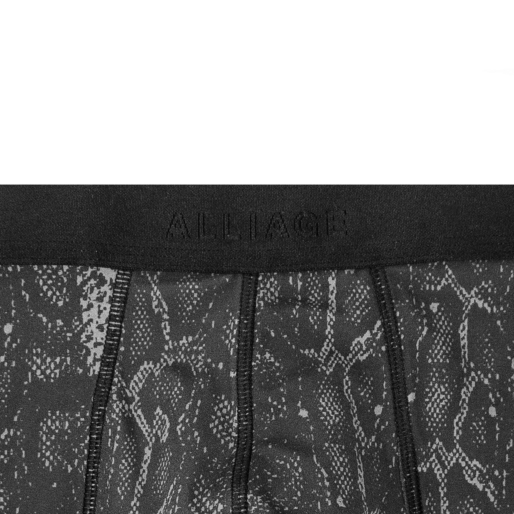 そして、ウエストゴム後ろ側に配された「ALLIAGE」を象徴するエンブレムは、その繊細さから通常の織ネームでは表現することが叶わず、何度も試作を繰り返しながら超高密度織機にて完成された珠玉のピース。その美しい仕上がりはプロダクトに対するブランドのこだわりを示しているのです。