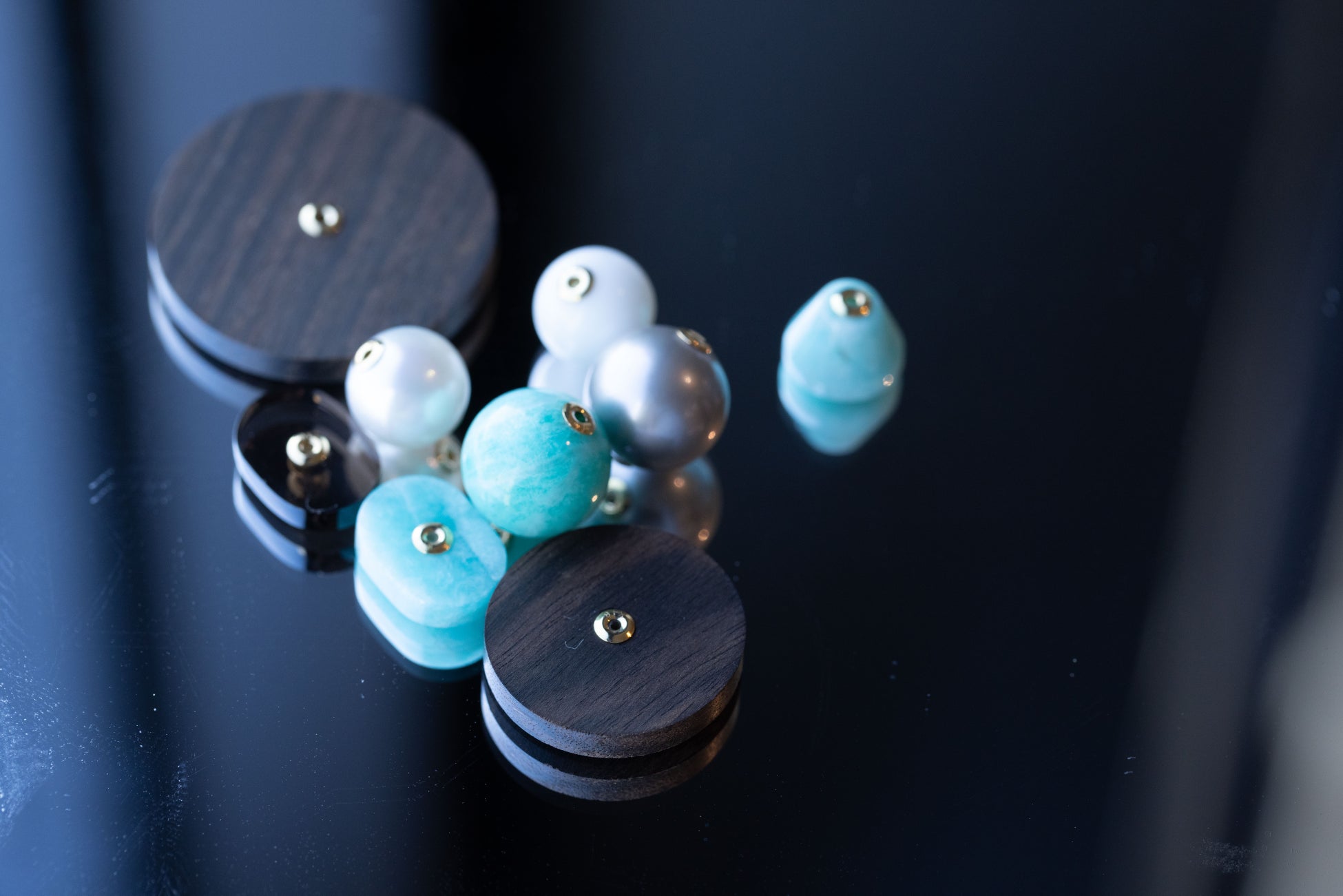 美しい天然石を、ジュエリーに込めた根源的な意味・願いを形にしたスピア=槍 に通し重ねることで、色&立体的な広がりを楽しめる新しいスタイルのピアス。