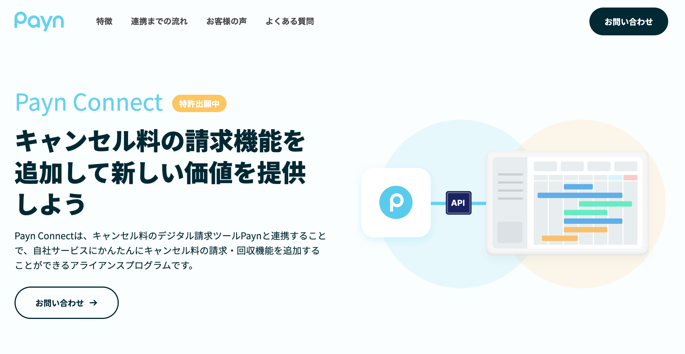 今回新たにリリースした『Payn Connect』は、Paynと連携することで、自社サービスにかんたんにキャンセル料の請求・回収機能を追加することができるアライアンスプログラムです。