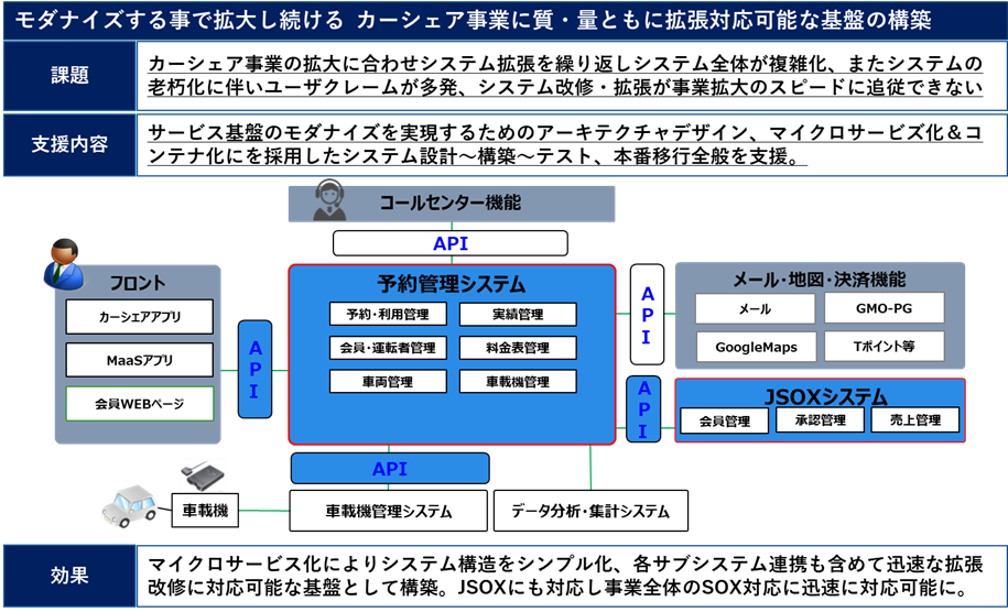 クラウドネイティブ、マイクロサービス、コンテナ等を採用した「カーシェアリング向け 予約管理システム」を構築。
