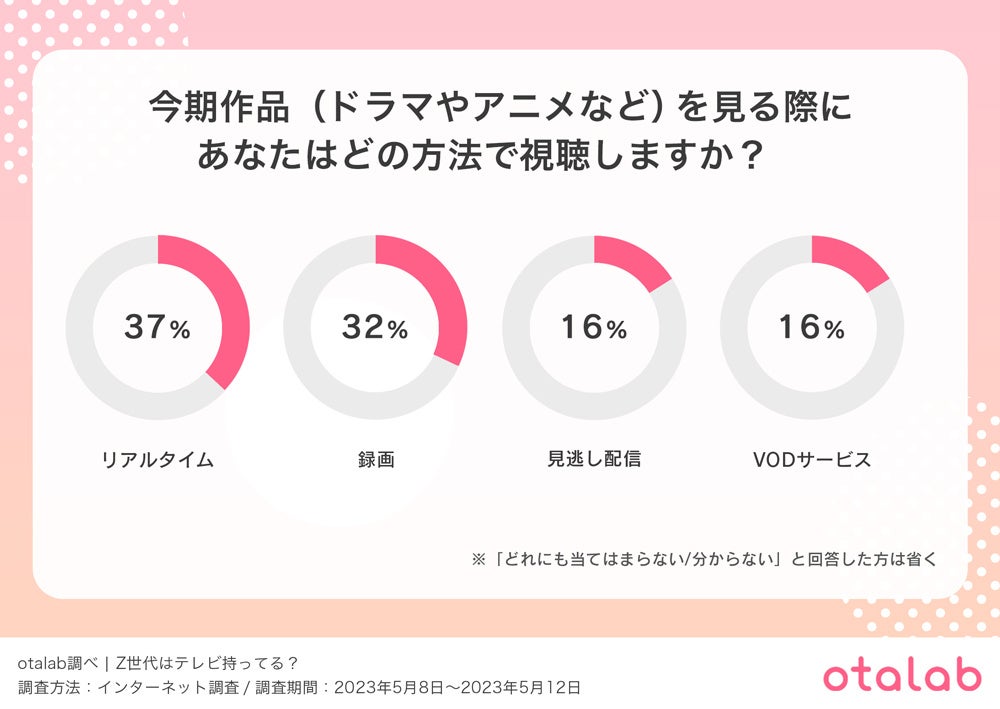 ・今期のドラマやアニメなどを『リアルタイム視聴』する人は37%