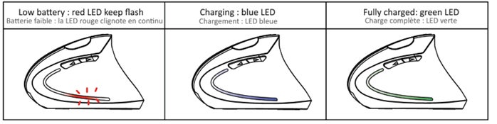 ライト表示:充電低-赤、充電中-青、充電完了-緑