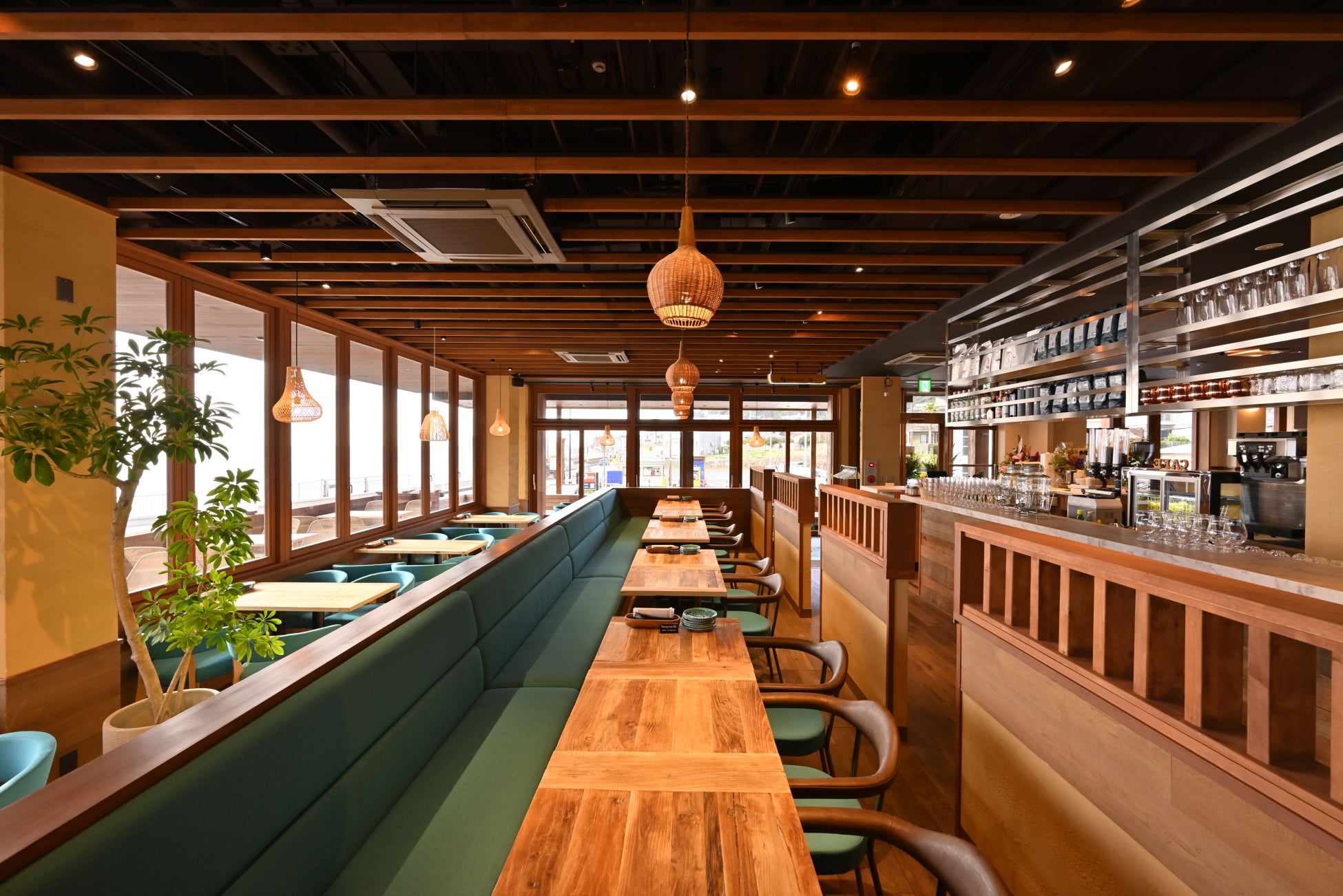 稲村ケ崎公園目の前、湘南を代表する国道 134 号線沿いのオーシャンビュースポット「稲村ケ崎温泉」内に2022年12月にオープンしたアジアンカフェです。 広々とした寛ぎ空間の店内では、雄大な海をながめながら、地元神奈川の食材を使ったアジアン料理とカフェメニューをお楽しみ頂けます。