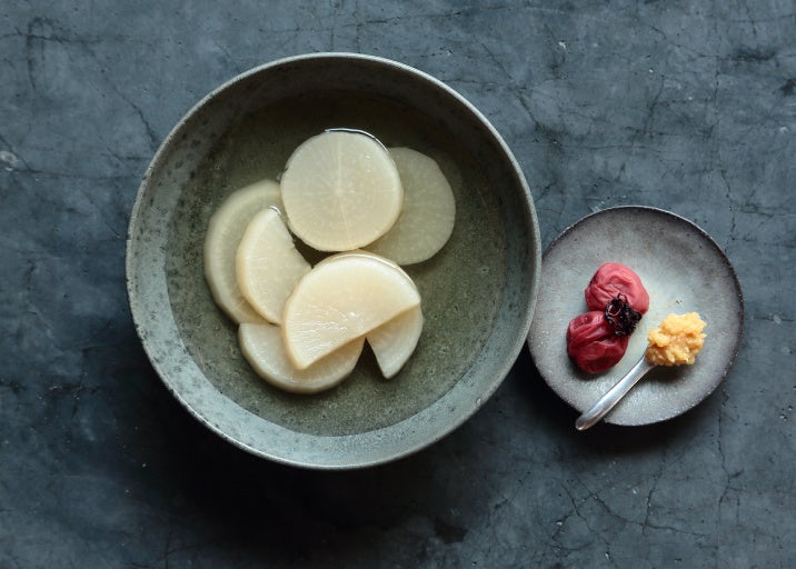 ファスティング終了後はスッキリダイコンで総仕上げ。大根の食物繊維と梅干のクエン酸を一緒に召し上がっていただくのがポイントです。