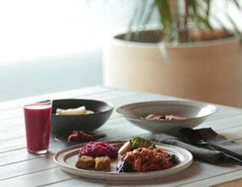 ミシュラン店出身の料理人による準備食・復食に、ファスティング食は果物野菜を贅沢に使ったコールドプレスジュースで美味しさを追求。
