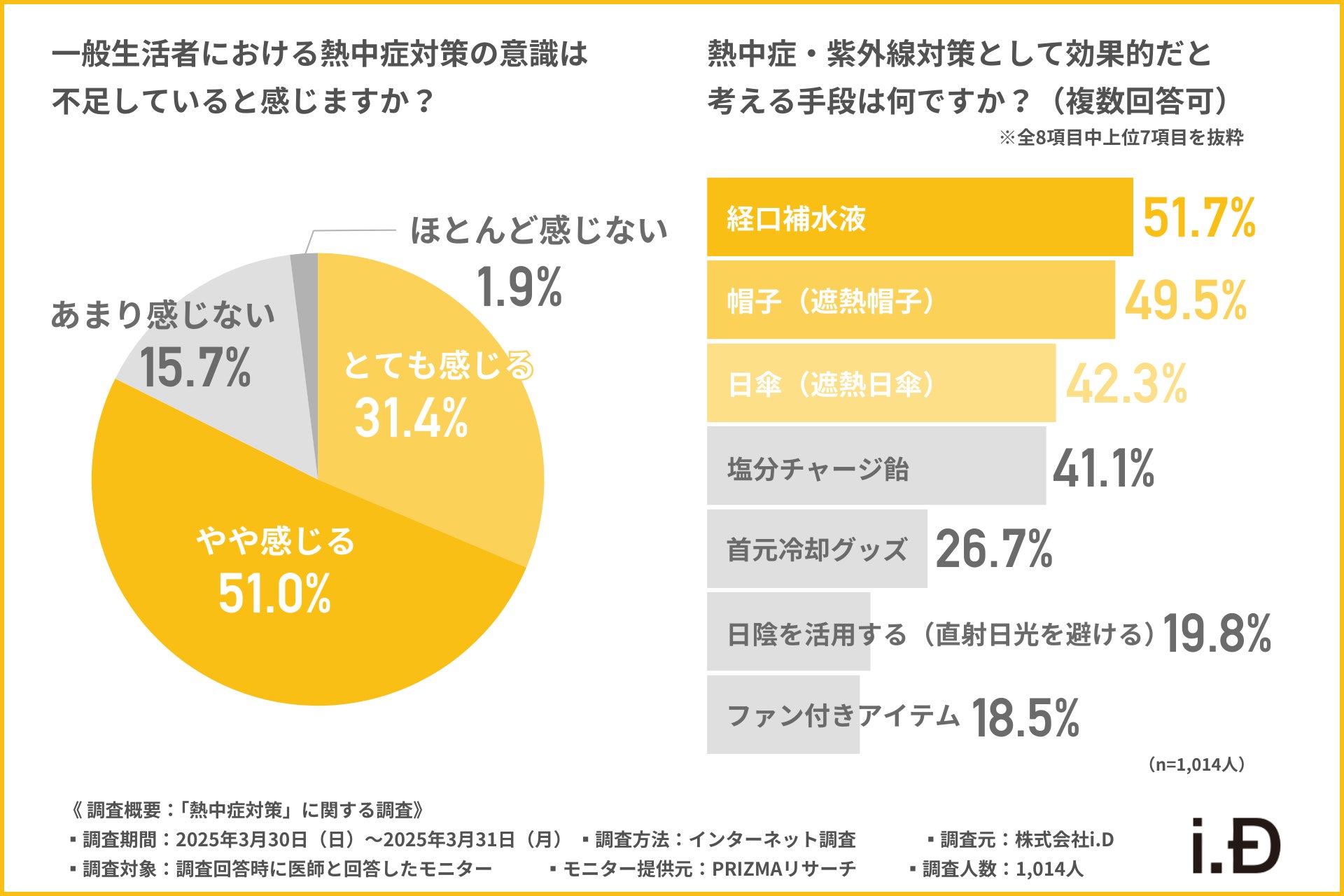 株式会社i.D(所在地:東京都港区、代表取締役:堀井 昭一)は、医師を対象に、「熱中症対策」に関する調査を実施しました。