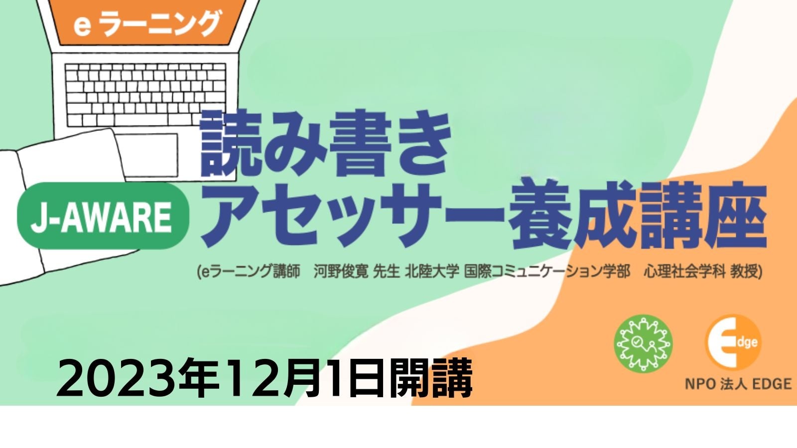 読み書きアセッサー養成講座を12月1日開講。eラーニングと演習で、読み書きアセスメント(検査)の実施と、支援の提案ができる人材を養成します。