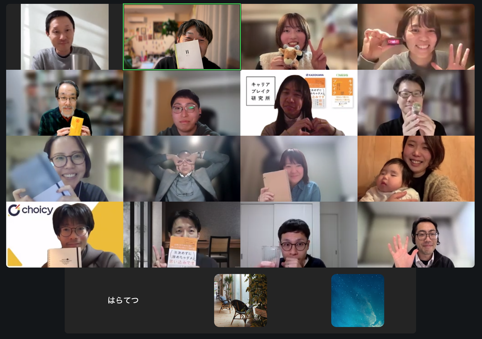 キャリアブレイクアカデミー第1期では、キャリアブレイクを経験した方、キャリア支援に関わる方、研究者、人の人生のプロセスに関心を持つ方など、多様な背景を持つ仲間が16名も集まりました。