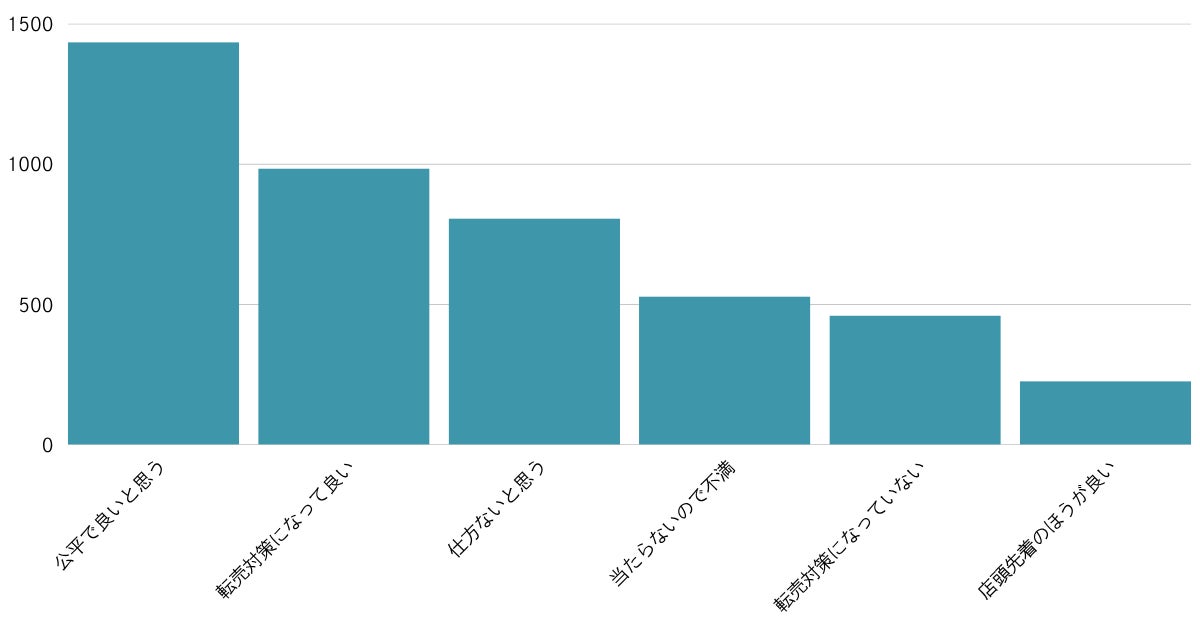 「公平で良い」が最多となっており、希少な在庫をランダム配分する仕組みは、大多数が“機会の平等”を感じ取っていることが伺えます。一方で、約5人に1人が「当たらないので不満」と回答しており、“公平だが当たらない”というジレンマが顕在化し、抽選制自体へのストレスを感じている層が一定いることも示唆されています。