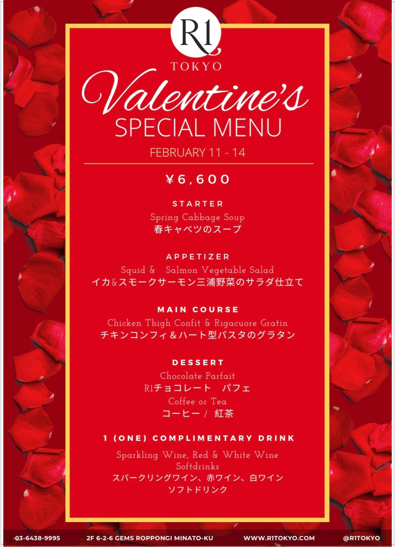 [六本木 R1TOKYO] 2/11~2/14 期間限定バレンタインデーディナーコースの予約開始!!