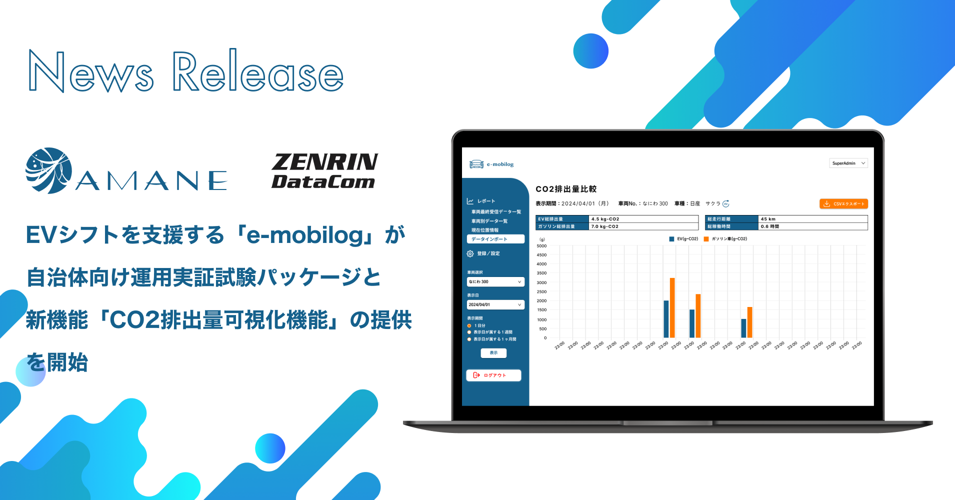 EVシフトを支援する「e-mobilog」が、自治体向け運用実証試験パッケージと、新機能「CO2排出量可視化機能」の提供を開始