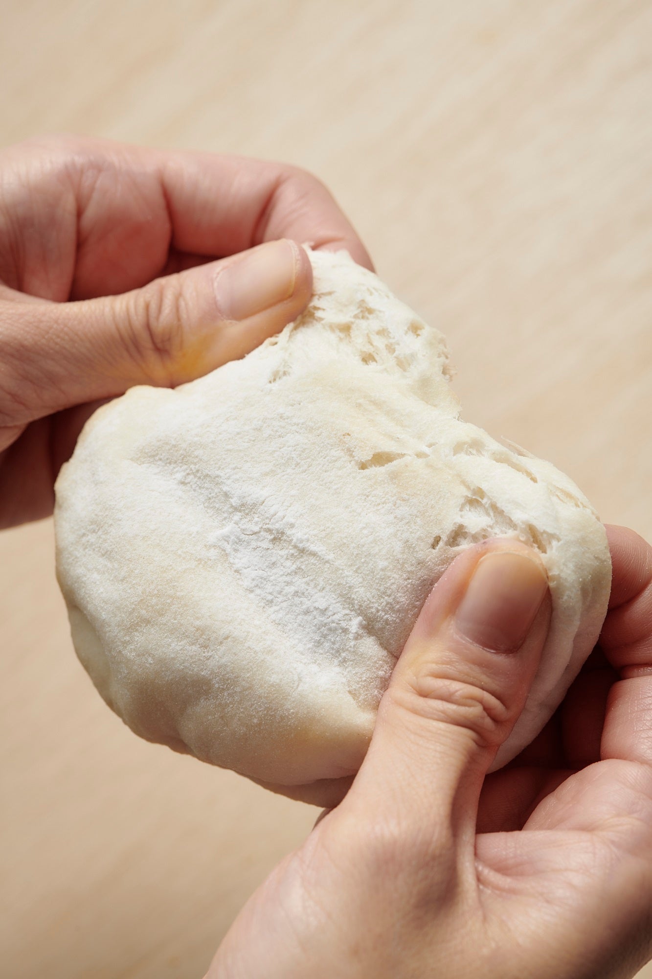 焼き色をつけない製法で、見た目も 大福のように仕上げました。