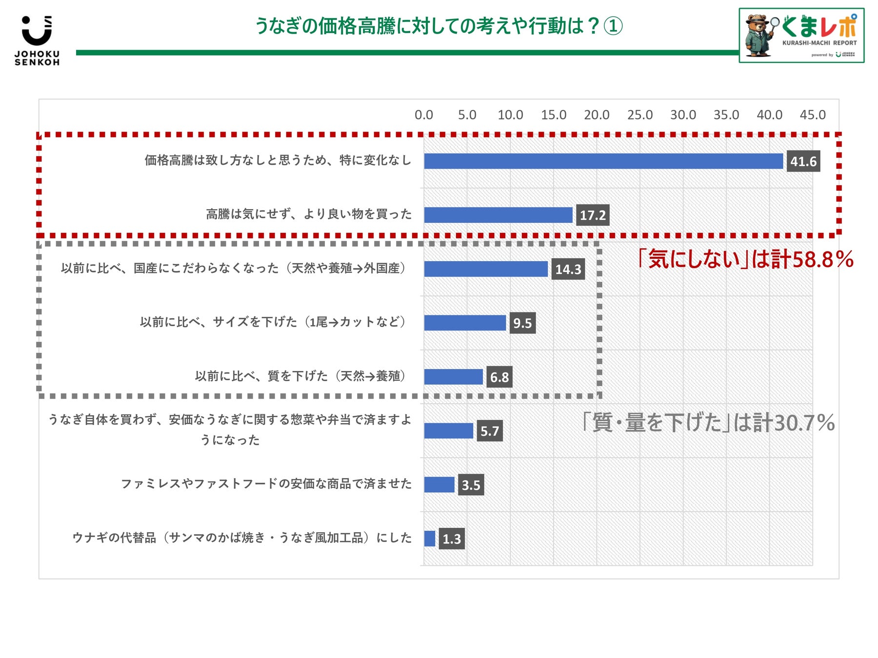 ・逆に、「国産にこだわらない」「サイズや質を下げた」は計30.7%
