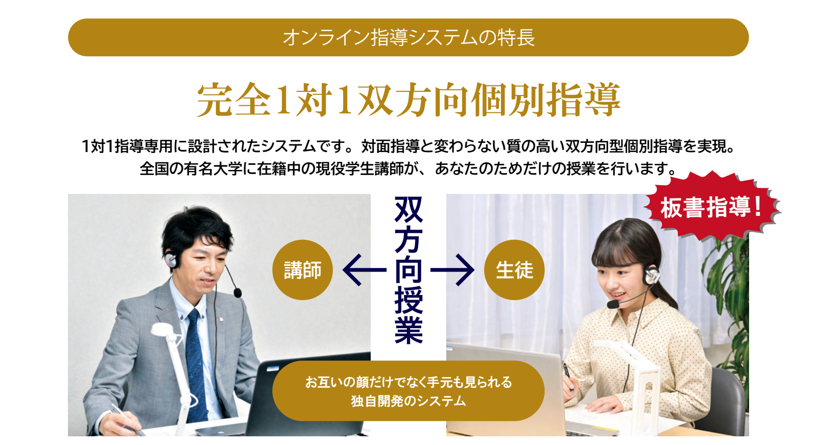 オンライン形式であることにより、関西圏に限らず、東京をはじめとする全国の最優秀プロ講師の指導を受講できます。最難関中学・難関高校・難関大学受験に精通した講師陣による専門指導を、地域にいながら受講できる点が大きな特長です。