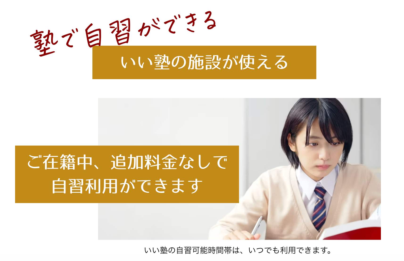 また、いい塾経由でのお申し込みの場合、塾施設内での受講や自習利用などのオンライン授業だけではないリアルなサービスを受けられる点が特長です。