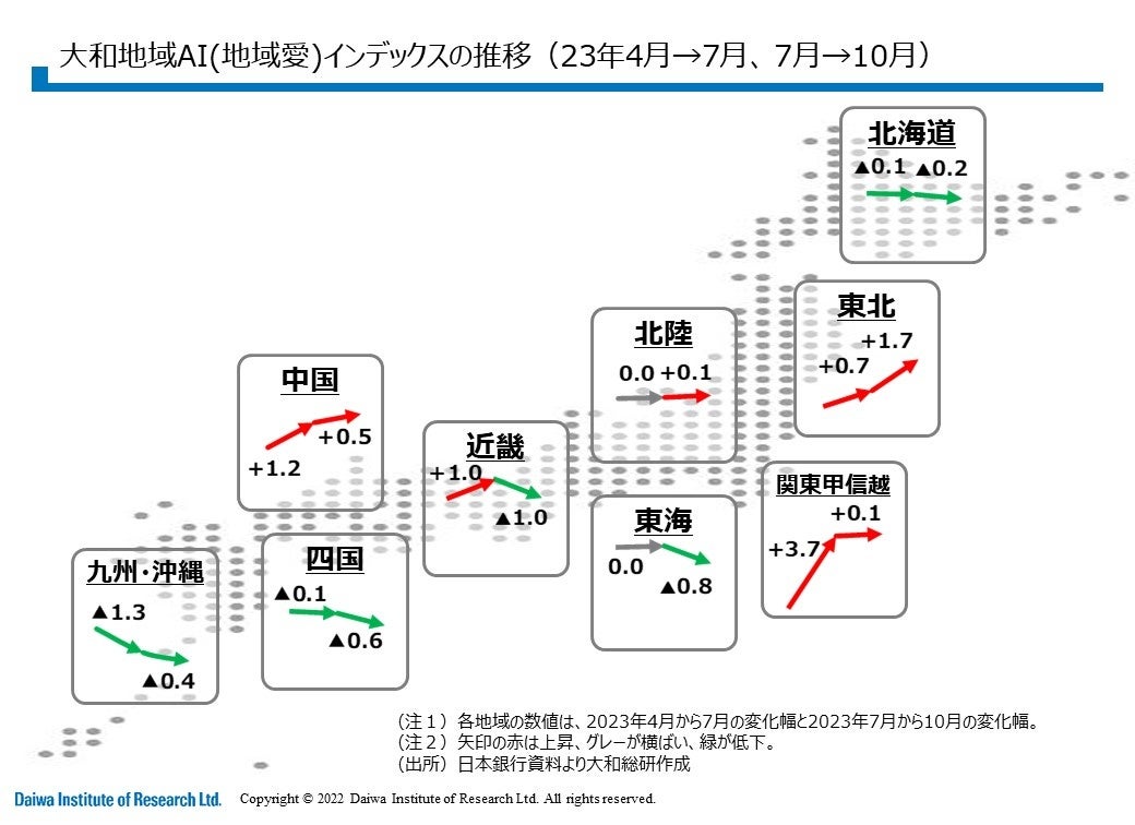 (※) 日本銀行の「地域経済報告(さくらレポート)」のテキストデータからAIモデルにより地域別の景況感を指標化し、エコノミストが変化の度合や背景等の考察を加えた四半期毎のレポート。2017年7月より公表。