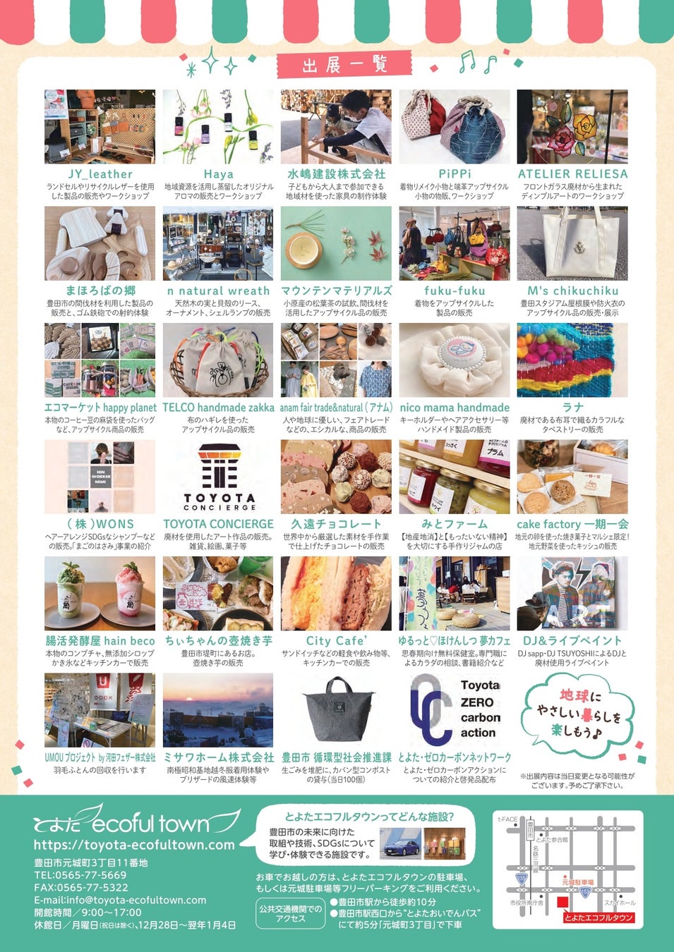 このイベントは、環境に配慮した商品の販売やワークショップなどを通して、来場者が持続可能性や資源循環などの大切さについて知り、自身の生活や行動に取り入れるきっかけとしてもらうことをねらいとしています。