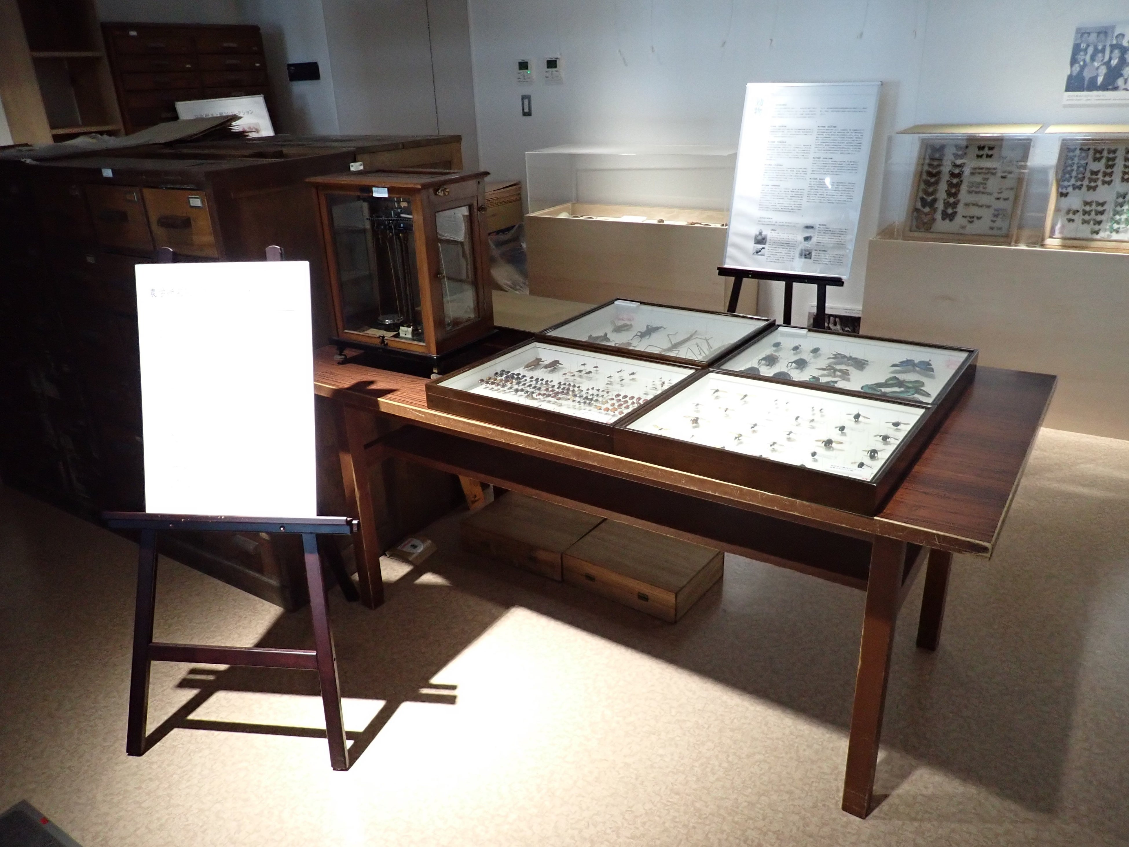 故 江崎悌三教授・故 安松京三教授らによって収集された昆虫学教室創設当時の昆虫コレクション、故 平岩馨邦教授・故 内田照章教授らによって収集された動物類の剥製、故 内田恵太郎教授が収集した魚類標本の一部や、故 瀬川宗吉教授著の図鑑で使われた藻類の標本類などを含みます。また、江崎教授が実際に使用されていた机も展示しています。