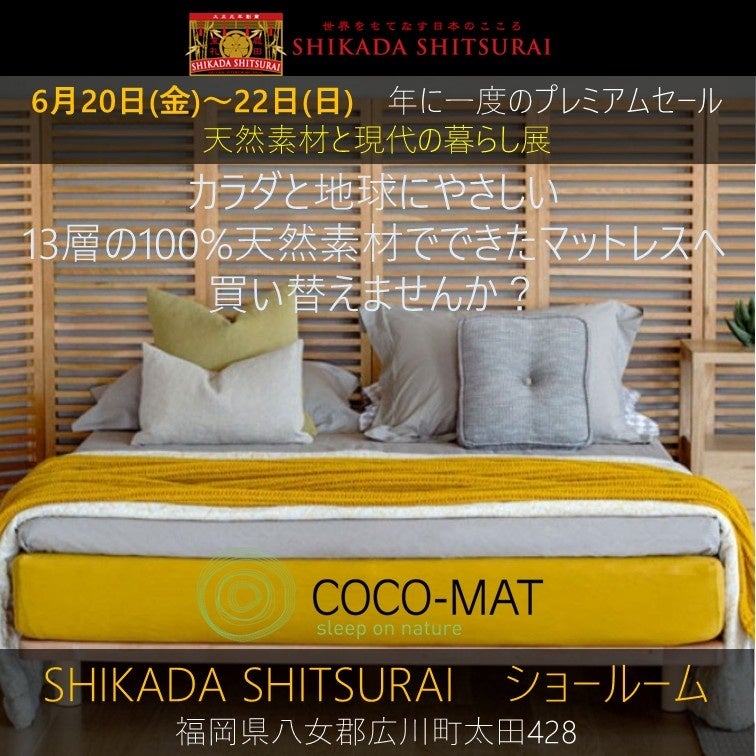 「天然素材と現代の暮らし展」は、天然素材の可能性を広げる取り組みとして鹿田産業が50年以上にわたり開催してきた小売イベント。今回はその中でも特別な“プレミアムセール”として、以下のようなコラボレーションを展開します:カリモク家具(家具):日本を代表する高品質家具ブランドとの特別展示販売COCO-MAT(ギリシャ発マットレス):自然素材の睡眠提案・鍋島緞通、アートチューリップ(キリム)、トーシン(イ草)、浅尾繊維(寝具)など多数参加地域の伝統工芸である「八女すだれ」を手がける鹿田産業は、近年ではラタンや竹などを家具部材として供給。2025年5月に東京・有明で開催された「オルガテック東京」では、関家具との協業展示が注目を集めました。今回もまた、デザイン・素材・地域性が交錯する体験型イベントとして、インテリア関係者やメディアからの注目が期待されています。