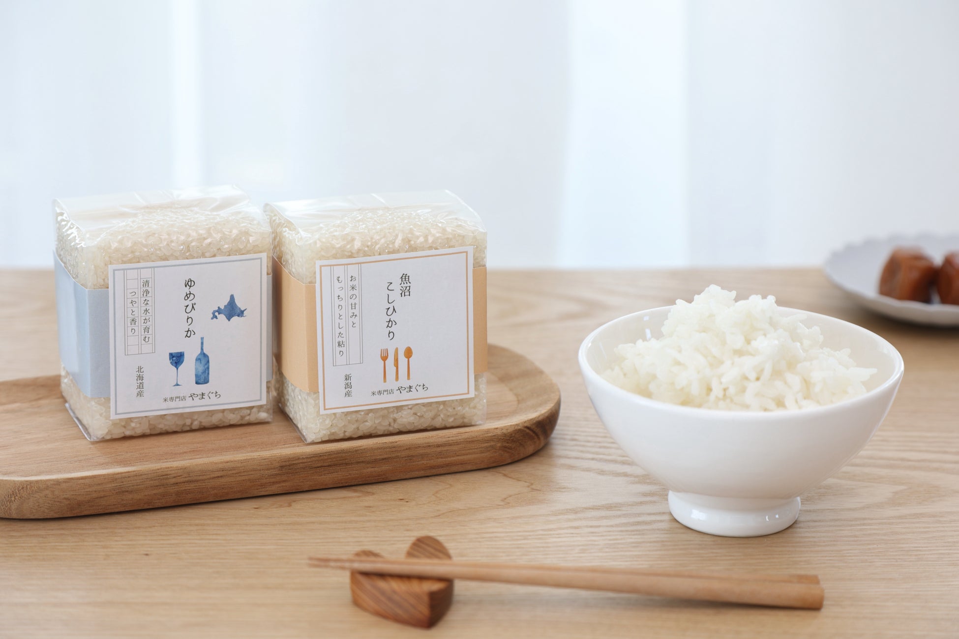 『第9回米-1グランプリ in らんこし』準グランプリ受賞米の「北海道 水芭蕉米 うたう(ゆめぴりか)」をはじめとする自社で製造している4品種を展示・販売いたします。手に取りやすいキューブ型に形成しているので持ち運びも簡単。