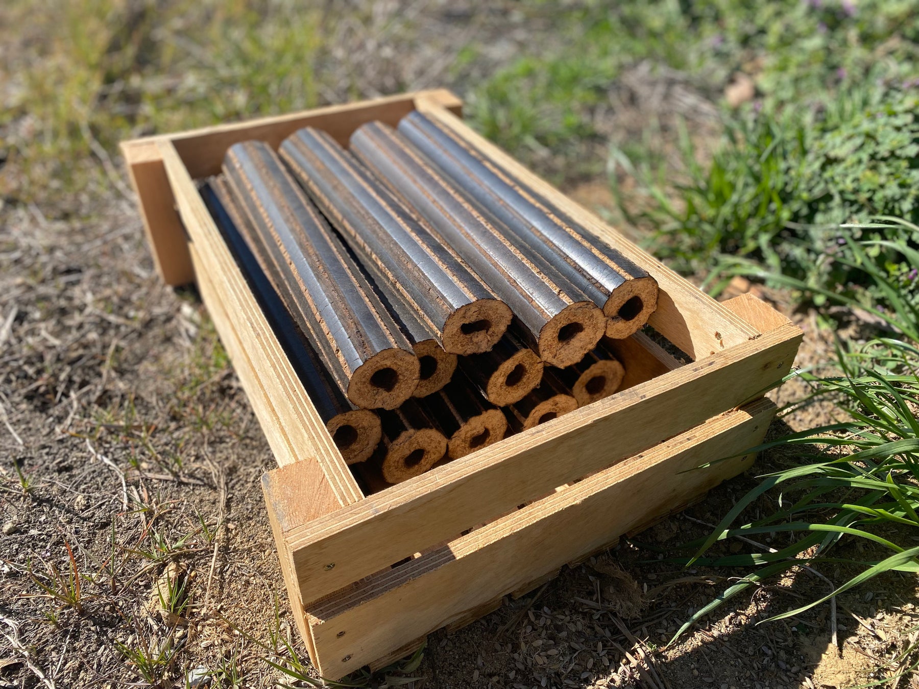 着火すると炭や薪のように使用することができ、機械によりもみ殻を10分の1程度に圧縮成形しているため、密度が高く長時間に亘り燃焼します。薪に比べて火力も強く火持ちが良い点が特徴です。