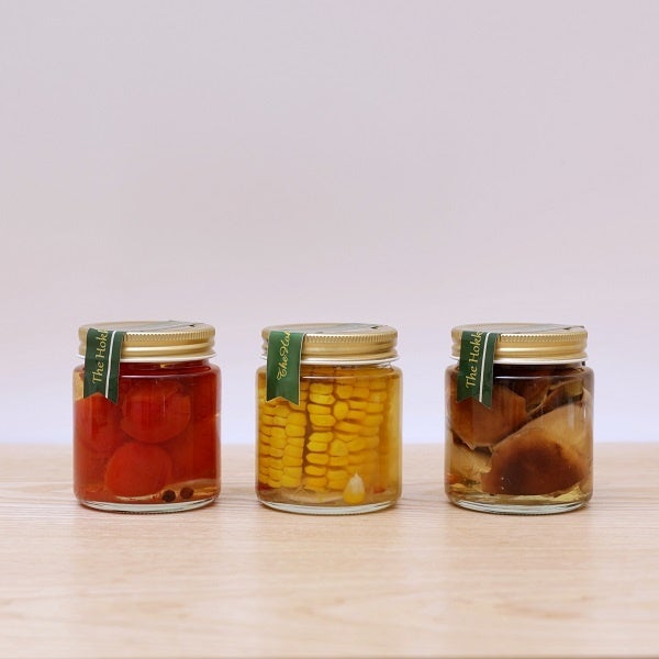 自家栽培のお米を天然発酵&壺仕込みの「米酢」に仕上げ、こだわり素材を漬け込んで自家製のピクルスにしました。