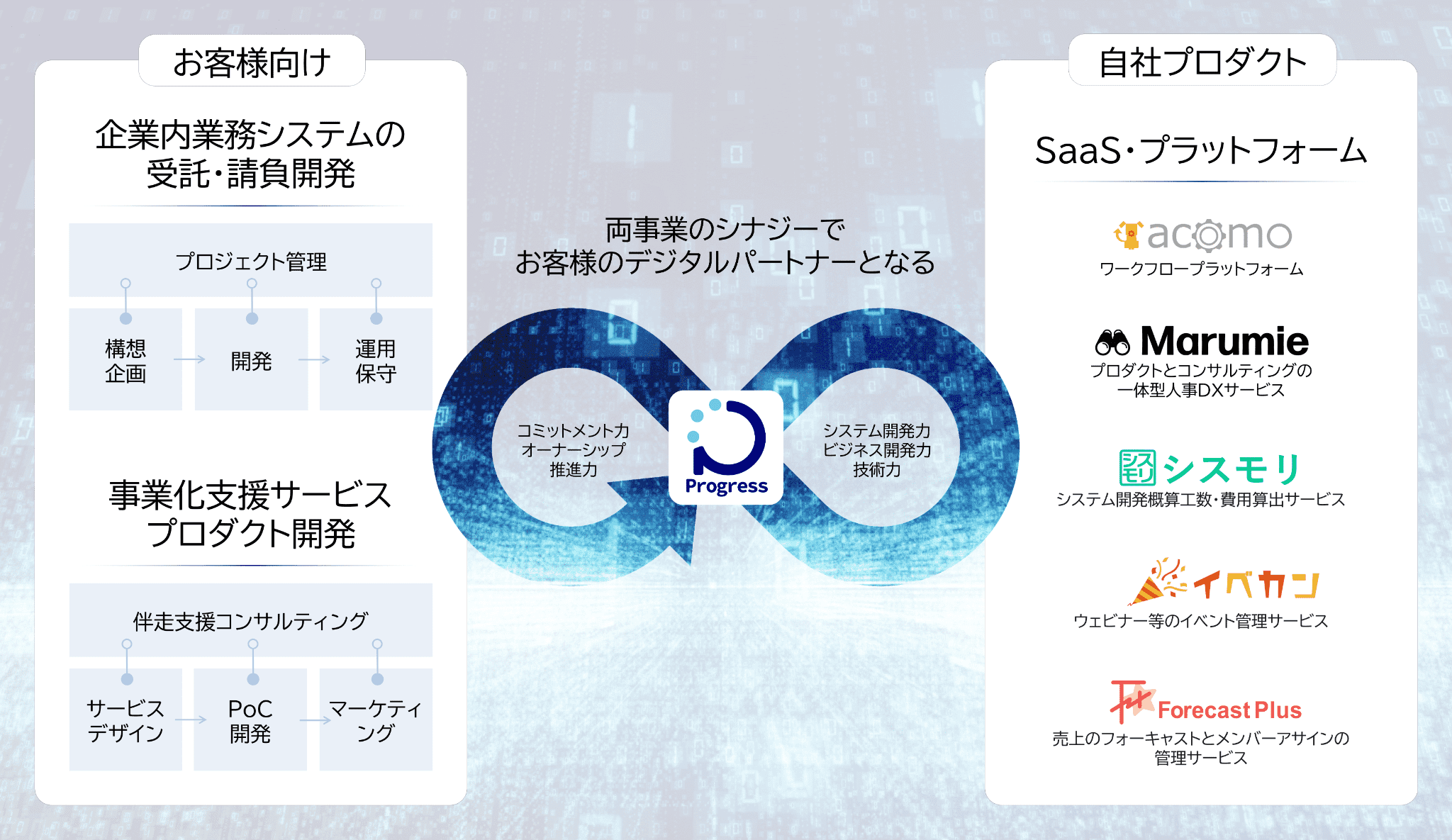 お客様向けのご支援と自社プロダクトのシナジーでお客様のデジタルパートナーとなります |