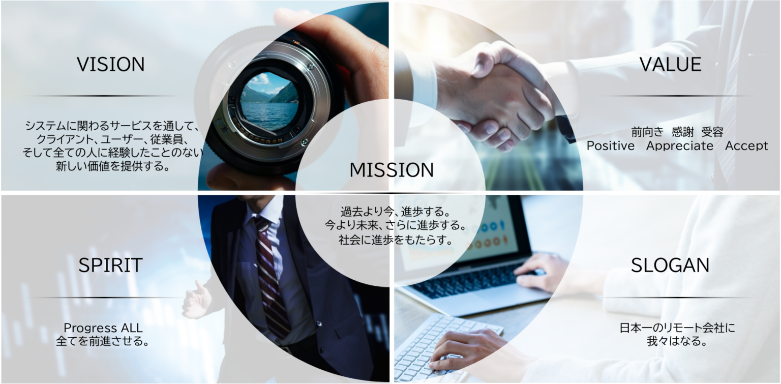 設立から3年が経ち、おかげさまで当社の地盤も固まりました。2030年までの経営計画を示した「Progress2030(プログレスサーティ)」に掲げた新たな目標「クライアントのデジタルパートナーになる」とともに、コーポレートブランディングに取り組み、理念を「MISSION・VISION・VALUE・SPIRIT・SLOGAN」に再定義しました。