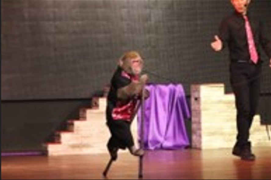 猿まわしショーを屋内型劇場で鑑賞できるエンタメ体験。LED照明、大型LEDビジョンなどの『現