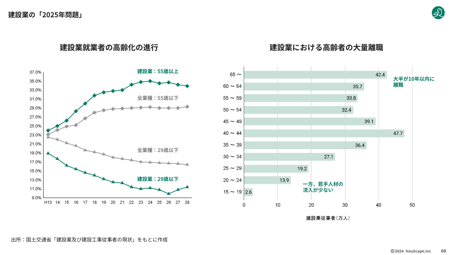 1)建設業界における労働者不足と業務過多の課題