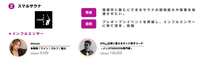1.静岡県に強いインフルエンサーを起用するため、商圏エリアに低価格かつ効率よく宣伝が可能!