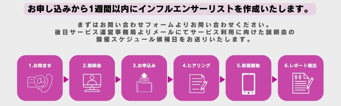 2.サービス事務局が依頼内容などをヒアリングし最適なインフルエンサーを選出致します。