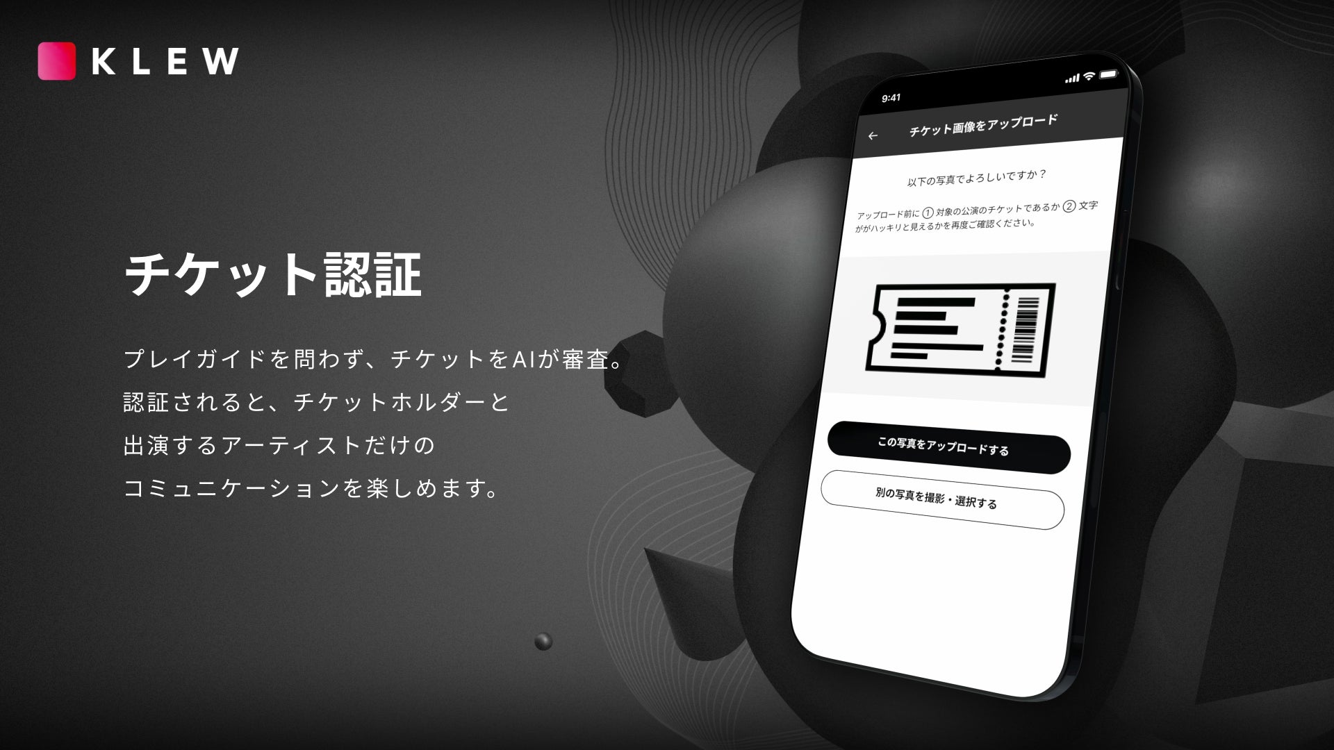 そこで、KLEWではAIを活用したチケット認証機能を実装。ユーザーの手元にあるチケットをKLEWが読み込み、どのようなユーザーが公演に来るのかの判別を行うと共に、認証されたユーザー情報をアーティスト・マネージメントへ還元。更に、出演するアーティストとチケットをお持ちのユーザーだけが、ライブ前・ライブ後でもデジタル上でコミュニケーションできる機会を実現しました。