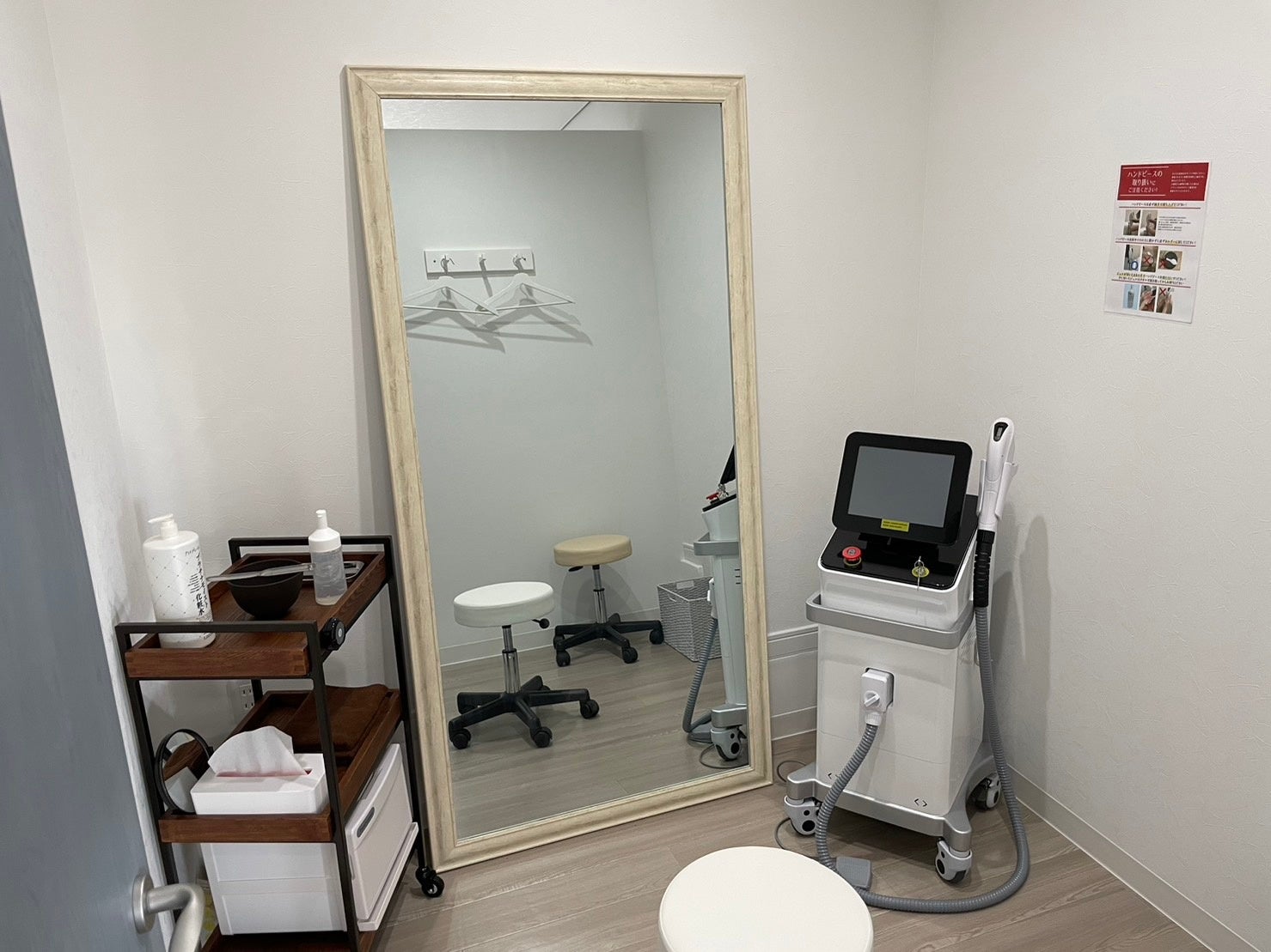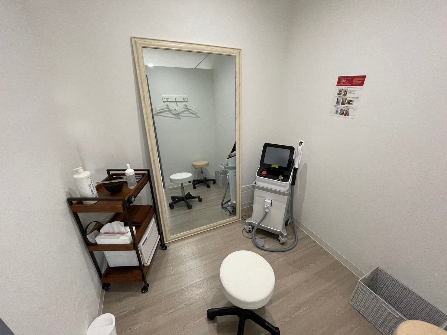 SELFMADEでは3~8部屋(店舗によります)のセルフ脱毛用の鍵付き完全個室をご用意。あなただけのプライベート空間で人目を気にせず自分磨きに集中できます。