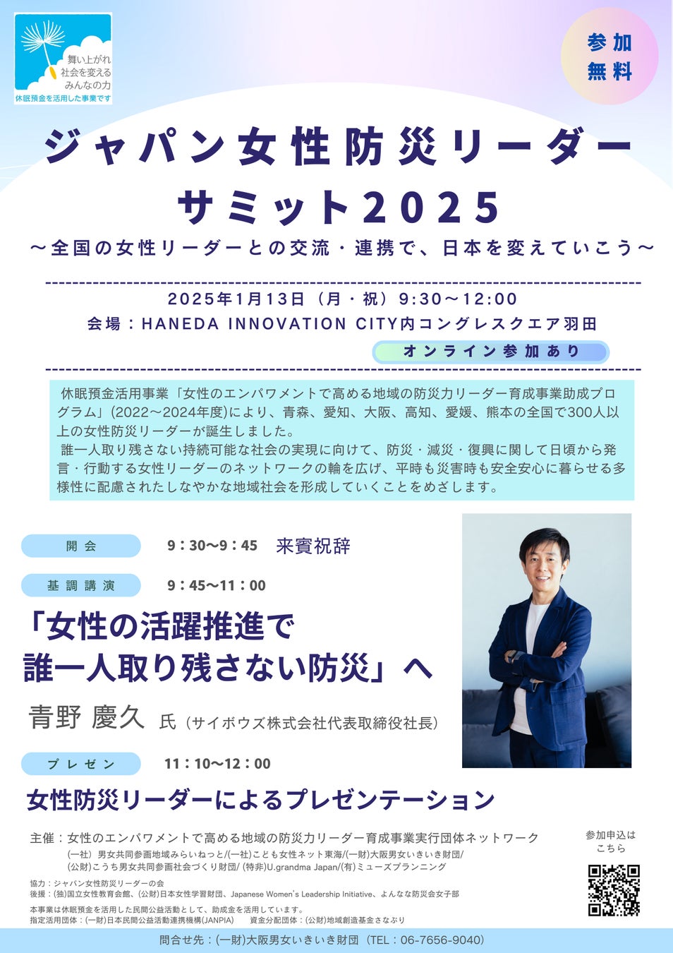 ◆2025年1月13日(月祝)ジャパン女性防災リーダーサミット2025開催
