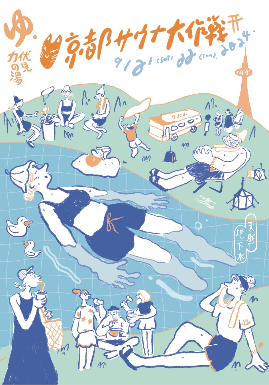 イベント名 : 京都サウナ大作戦 2024 開催日時 :2024年 9月 21日(土)、9月 22日(日) 10:00~17:00 [受付開始]各日 9:30~[最終受付](L.O)16:30 ※ご飲酒後のご入浴はお断りいたします。※荒天中止