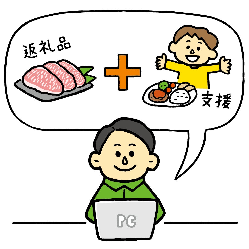 例えば、16,000円のふるさと納税を行うと、6kgのお米の返礼品を受け取りながら、同じ6kgのお米がこども食堂やひとり親支援活動の支援におすそ分けができるイメージです(返礼品を受け取らず全額寄附も可能)。