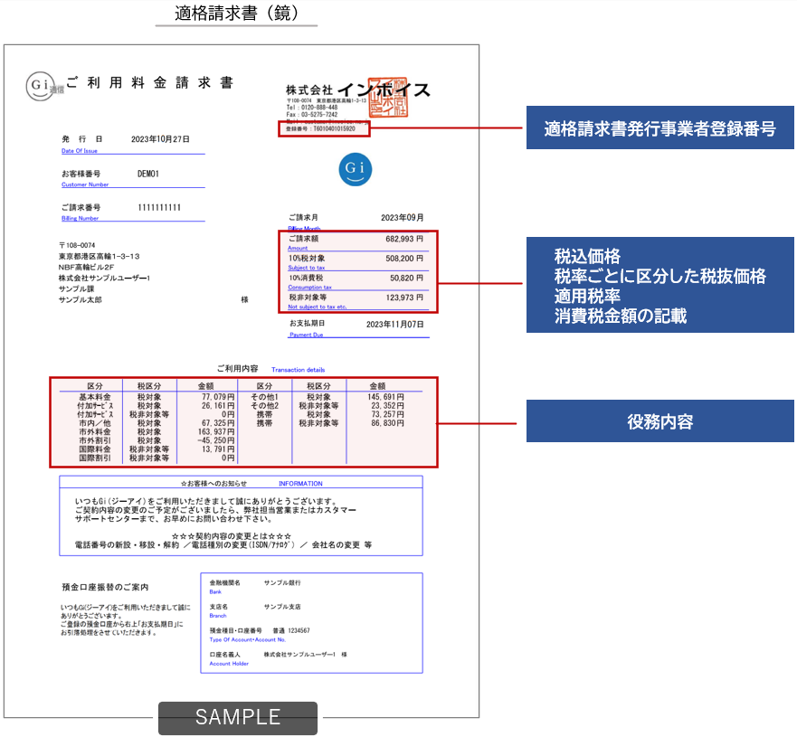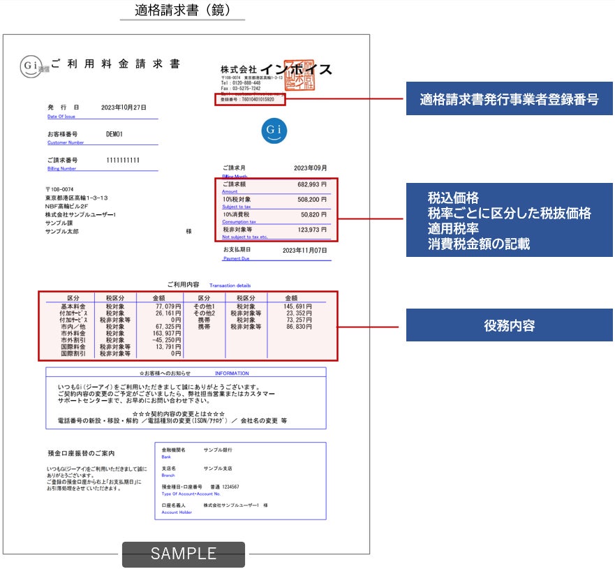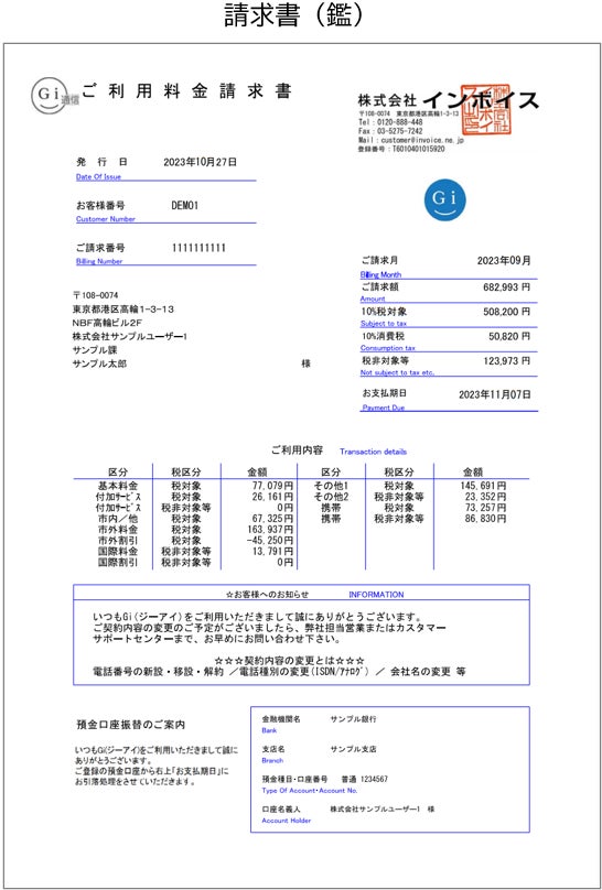 一括請求サービス「Gi通信」を提供する株式会社インボイス(代表取締役:加茂 正巳 本社:東京都千代田区)は、2023年10月に開始するインボイス制度対応を軽減する、適格請求書のレイアウトを公開しました。