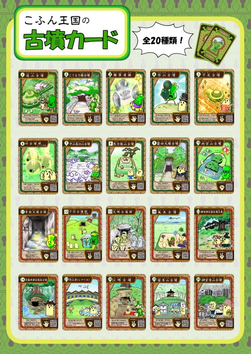 ご購入いただいたお客様には、特製「こふん王国の古墳カード」を進呈いたします。カードには、吉備路を中心とした岡山県内の個性豊かな古墳20種類を厳選。歴史を感じながら、集めて楽しいコレクションとしてもお楽しみいただけます。