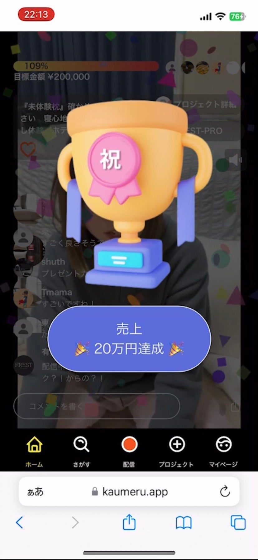 5/1にリリースしたライブコマース「カウメル」が、5/10(水) に1日最高額の127万円の商品販売を達成しました。