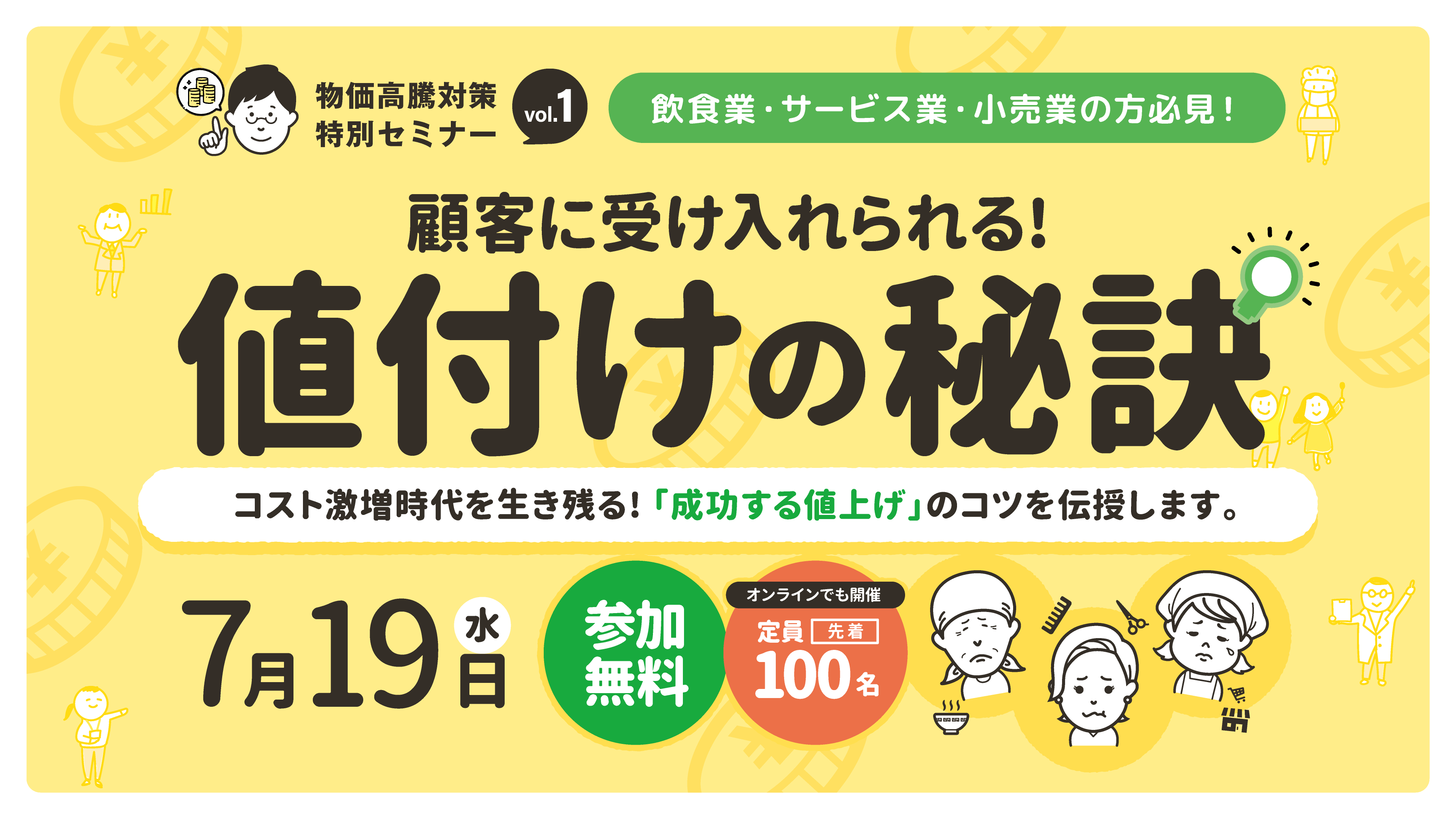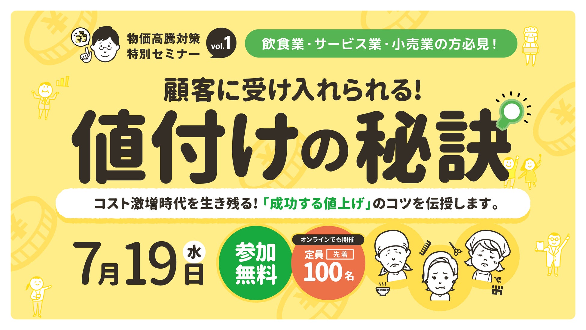 仙台市では、中小事業者の収益力向上を支援するため、物価高騰対策特別セミナーvol.1「顧客に受け入れられる!値付けの秘訣」を開催します。