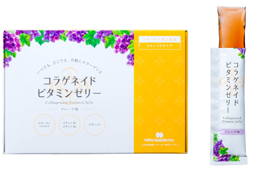 2023年9月に発売した『コラゲネイド ビタミンゼリー グレープ味』は、コラーゲンペプチドや3種のビタミンが配合されている点はもちろん、上品で甘酸っぱい味や、ぷるんとしたこだわりの食感にご好評をいただきました。今回は、新しくさっぱり爽やかな味の『コラゲネイド ビタミンゼリー 柚子レモン味』を、2024年1月22日(月)に発売いたします。