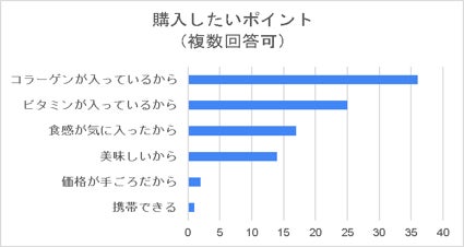 モニター結果で購入したいポイントについて伺ったところ、「コラーゲンやビタミンが配合されているから」という理由に続き、「食感が気に入ったから」という回答結果が明らかになりました。こちらの結果から、無理なく習慣化していただけるよう、こだわりの食感はそのままに、新しい「柚子レモン味」が誕生しました。