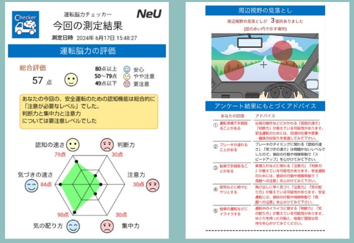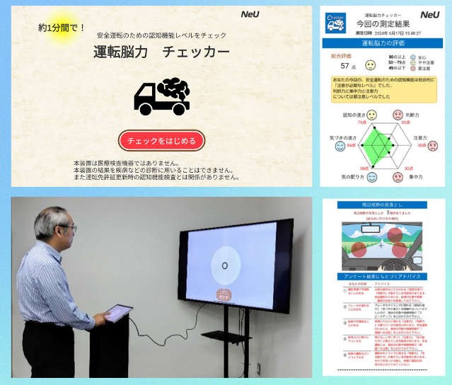 (株)NeUは、運転に重要な認知機能を1分で簡単にチェックでき、その結果を持ち帰ることができる「“イベント用”運転脳力チェッカー」のサービス提供を7月より提供開始いたします。「運転脳力チェッカー」は、短時間で簡単に安全運転に必要な力(認知機能)をチェックでき、イベントや研修等にて一般ドライバーおよび業務用ドライバーにお使いいただくことができます。