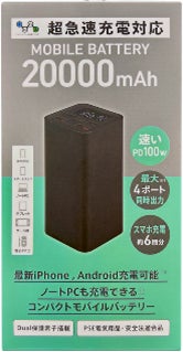 20,000mAh 大容量コンパクトモバイルバッテリー