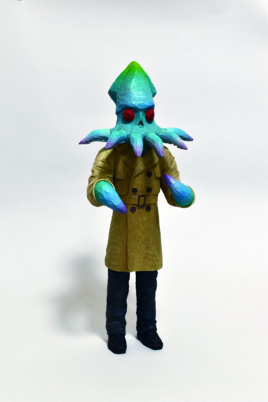 個展、グループ展などで怪人をモチーフにした油彩画、及び木彫作品を発表。主な展示に「怪人教室」(LAD GALLERY)、「眠れよい子よ よい子の眠る/ところ」(神奈川県民ホールギャラリー)など。ラインスタンプ「怪人スタンプ」がLINE Creators Stamp AWARD 2014 みうらじゅん賞を受賞。怪談えほん『おろしてください』(有栖川有栖著/岩崎書店)で絵を担当。その他、本の装画や挿絵なども手掛ける。